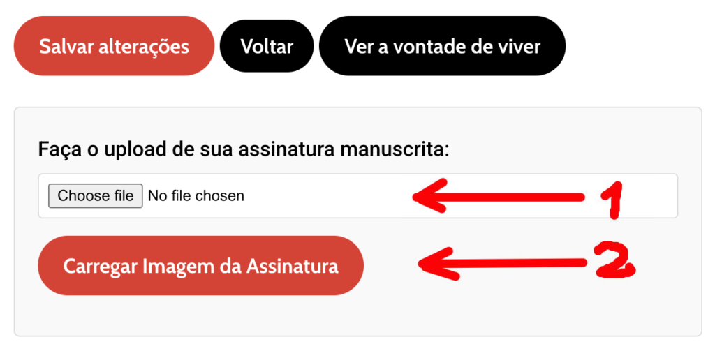 Quando vir a mensagem “Assinatura carregada com sucesso”, o seu testamento vital está atualizado.